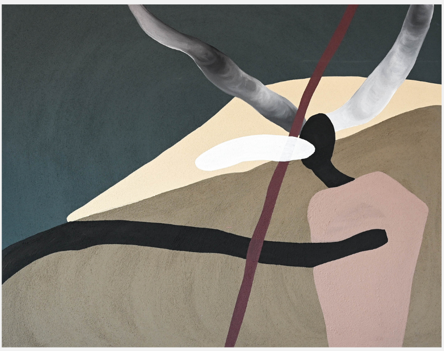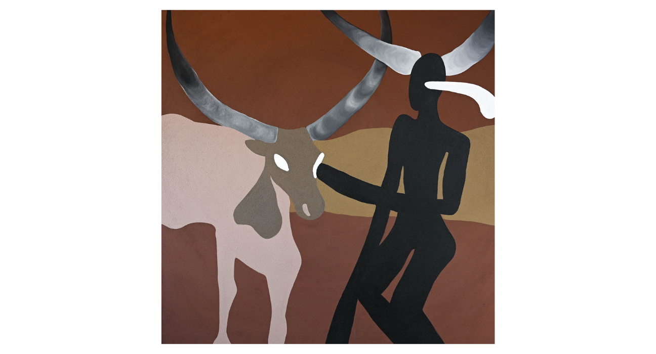 The guiding theological question “Thy will be done on earth as it is in heaven” is not merely recited here; it is performed. The paintings enact this petition by dissolving the distinction between heaven and earth. Heaven is no longer a destination but a resonance, a frequency that hums through the gestures of care, the rituals of offering, the labour of creation. The figures, though bearing horns, appear restful, even fragile. This compositional quietness amplifies their spiritual weight. They do not struggle toward divinity; they receive it. They model what John Mbiti famously described as “African religiosity without separation” where “God is not beyond reach, but within the rhythm of daily life.” The divine is here, in the feminine, in the animal, in the texture of paint.